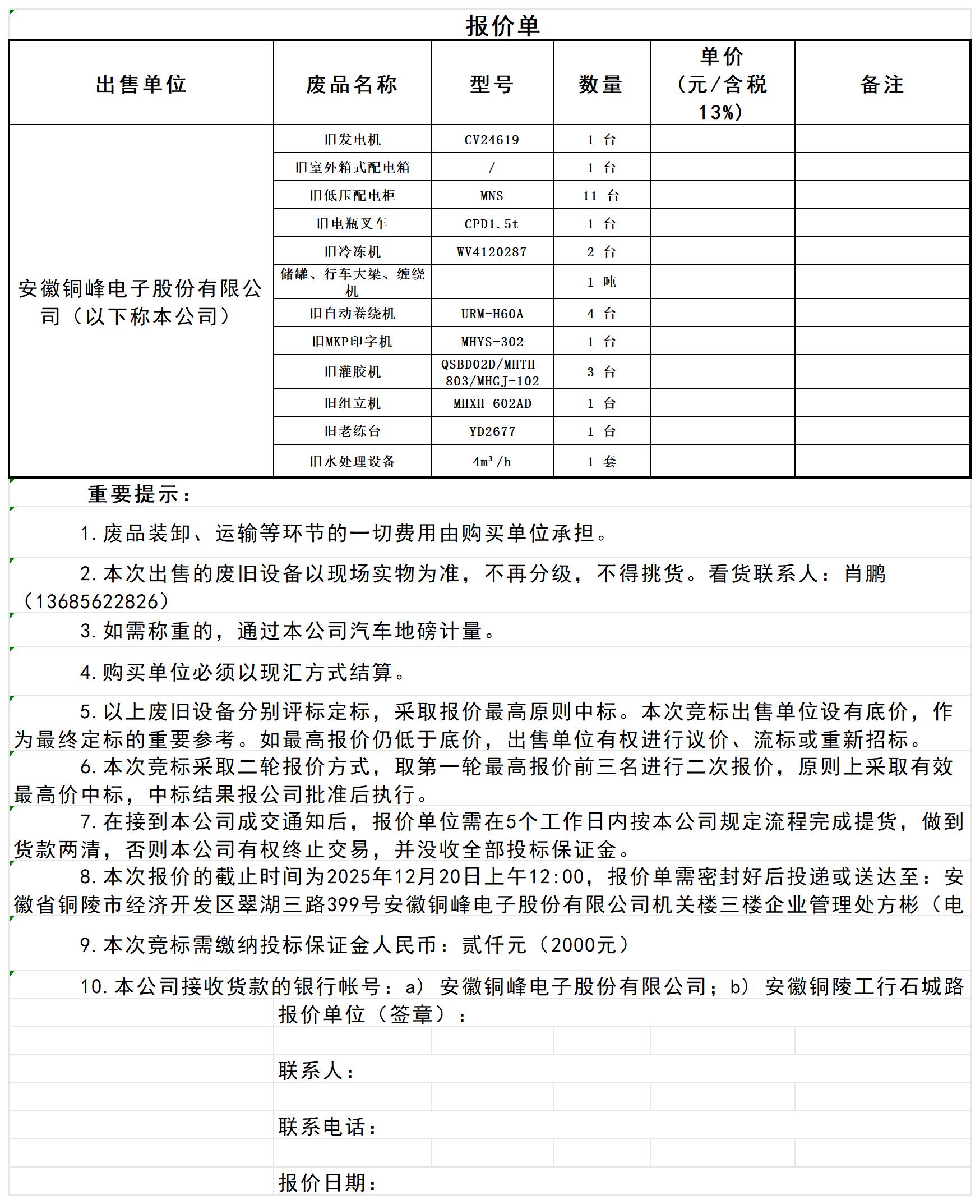 2025年12月廢舊設(shè)備處置報價單_Sheet1
