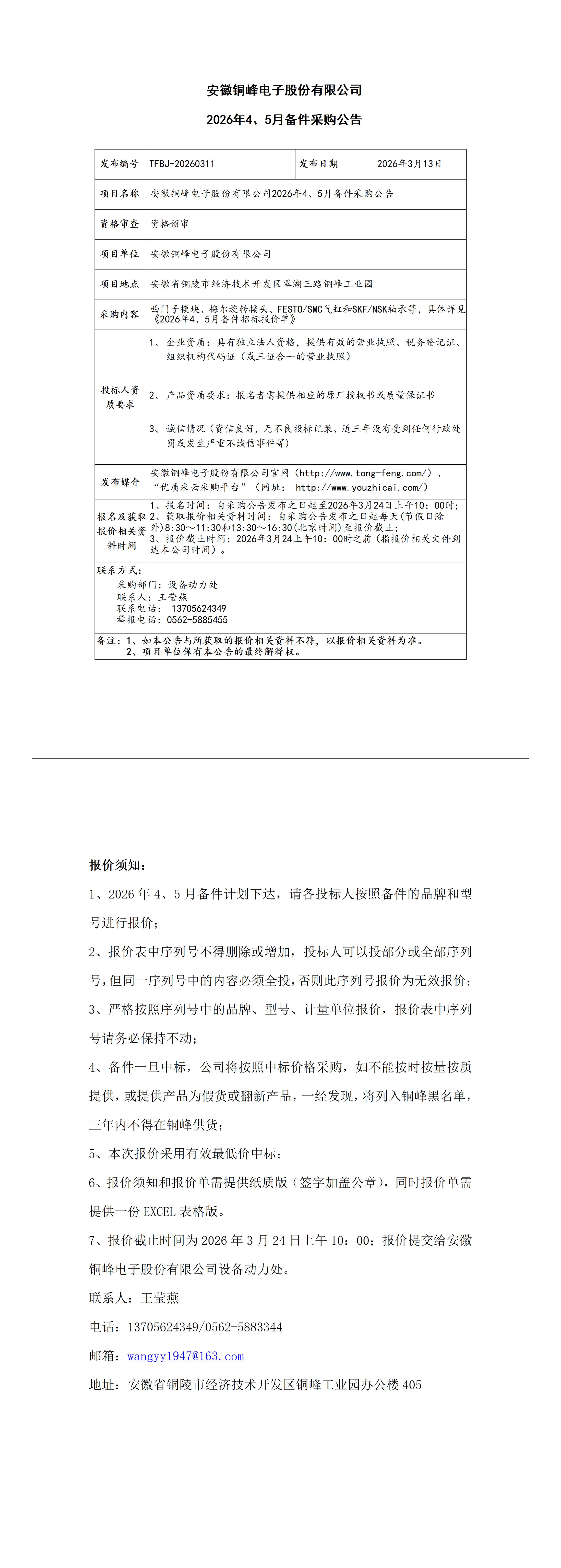 安徽銅峰電子股份有限公司 (備件公告) (1)_01