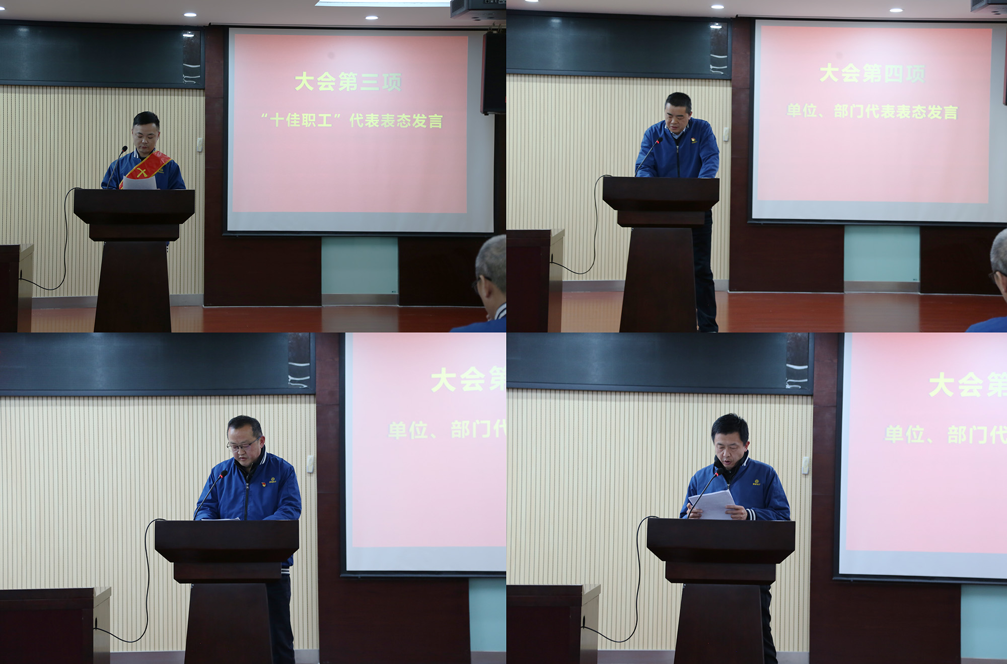 與會領導為受表彰的2025年度公司“十佳職工”頒發(fā)榮譽證書及獎金?!笆崖毠ぁ?、經營單位和職能部門代表分別作表態(tài)發(fā)言。